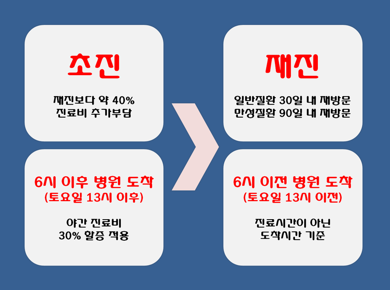 진료를 받는 시간에 따른 비용차이도 발생한다는 점도 모르시는 분들이 많더라고요.