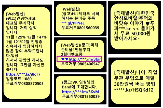 저만 그런 줄 알았더니 생각보다 많은 사람들이 이런 불편을 호소했던 모양입니다. 한국 인터넷진흥원에서 조사를 한 결과 원인이 밝혀졌다고 합니다. 돈을 받고 대량 문자발송을 대행해 주는 위탁업체, 일명 문자 대량 송출업체 수십여 곳이 최근에 해킹되어 탈탈 털렸다는 사실이 확인되었죠.