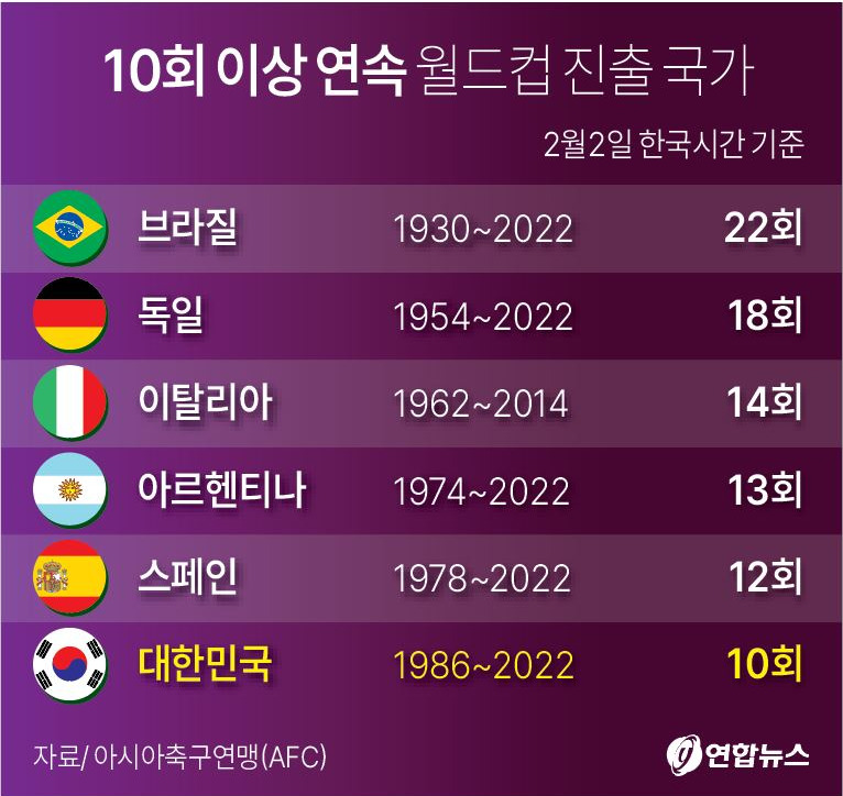 우리나라도 그 덕에 11회 연속 월드컵 진출이라는 금자탑을 훨씬 수월하게 달성할지도 모르겠습니다. 이탈리아가 한 번 주저앉았으니 이대로라면 연속 진출국으로만 보면 앞으로 역대 5위를 차지할 수도 있겠죠.