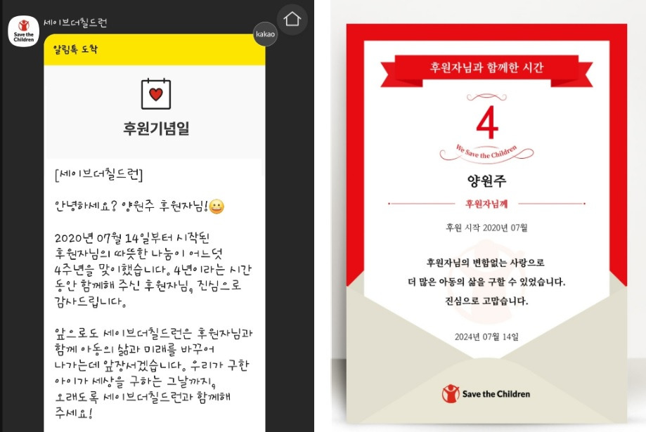 그동안 4년 동안 세이브더칠드런을 후원하게 된 이유도 아이들을 지키는 일이 가장 중요하다고 생각해서였습니다.