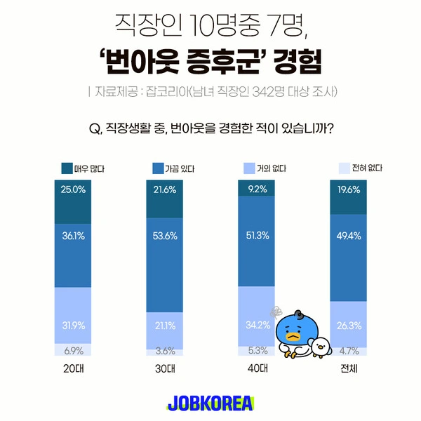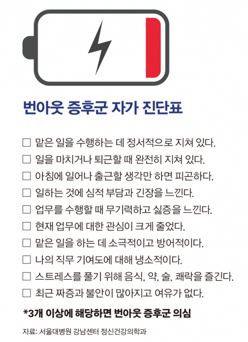 직장을 다니는 사람들이라면 대부분은 겪어봄직한 일이니 번아웃은 피하기 어렵다는 사실은 대부분 압니다. 그러니 빨리 해결할 방법을 고민하는 편이 낫습니다. 그리고 한편으로는 너무 아무렇지도 않게 상습적으로 이 말을 사용할 필요까지는 없다는 생각도 해봅니다.