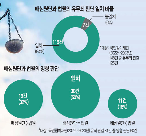 실제로 국민들이 왜 이런 콘텐츠에 열광하게 되었는지를 이해하려면 한 통계만 참고해도 충분히 가능합니다. 바로 국민참여재판에 대한 통계인데요. 이 자료에 따르면 배심원단이 가진 양형 판단에 법원의 판결이 미치지 못하는 경우가 전체의 1/3에 달합니다. 죄가 많아도 검사가 구형하는 형량보다 더 높게 판결하지 않는 관례도 있을뿐더러 양형기준도 우리의 국민 정서에 훨씬 떨어지는 경우도 많고 특히 법관들 중에도 납득하기 힘든 가치관을 가지는 경우도 있어서겠죠.