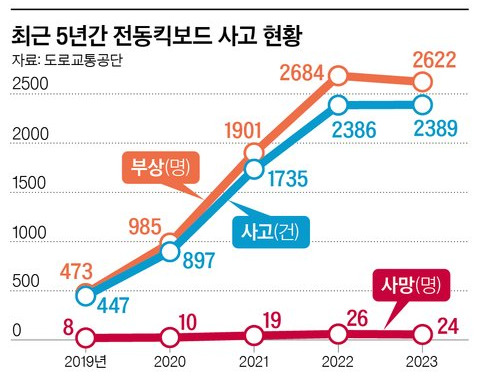 특히 청소년들이 이런 위험을 주도하고 있다는 점이 더 큰 문제입니다. 19세 이하 청소년의 개인형 이동장치(PM) 사고 건수는