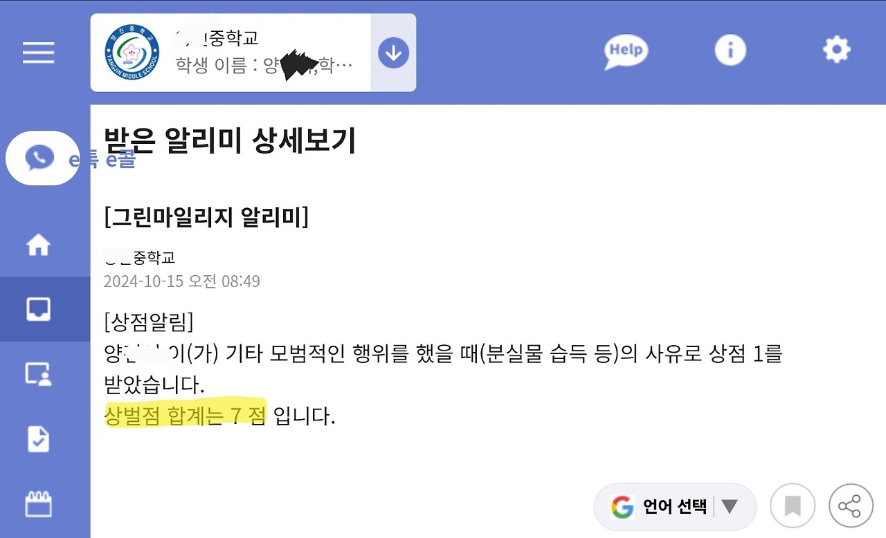 아이들이 다니는 학교 친구들 중에 조금 머리가 빠르게 회전하는 아이들은 아예 벌점을 몇십 점까지 채워서 훈장처럼 의기양양하게 생활하는 친구도 있습니다. 상한선을 넘겨버린다고 해도 딱히 학교 현장에서는 할 수 있는 일이 없어서라고 합니다. 중학교도 의무교육이라 선생님들이 겪으시는 애로사항이 많아 보이기는 했습니다.