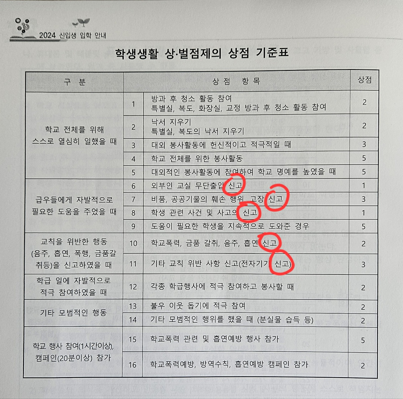 기준표에 따르면 신고를 해야 하는 항목들이 많고 둥이들도 선생님을 도와드리고 정리를 하는 일, 물건을 찾아주는 일로 상점을 받지는 못했거든요.