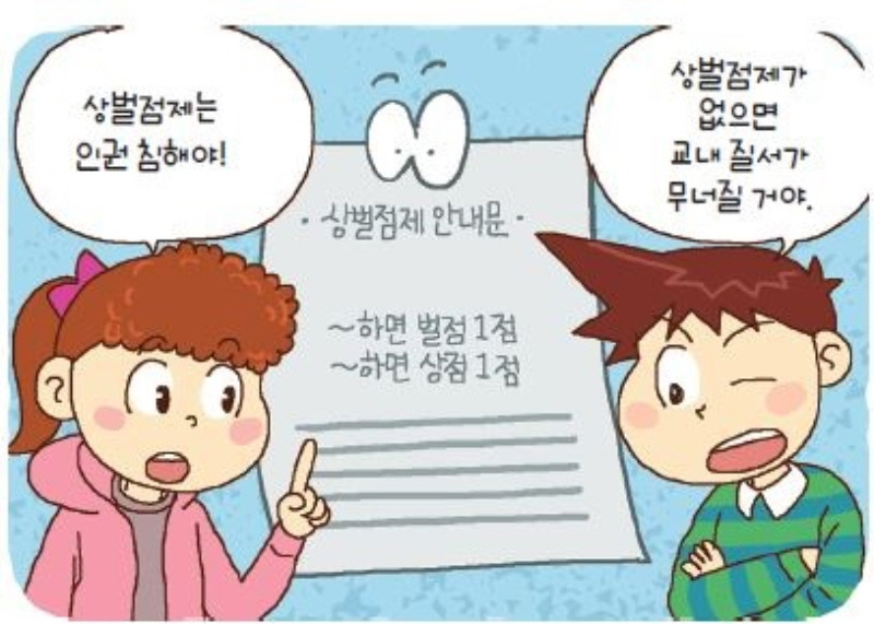 중학교부터는 상벌점 제도가 운용됩니다. 잘하면 상점, 못하면 벌점을 주는 방식인데요. 이 제도가 생각보다 논란이 많습니다. 일단 가장 많이 언급되었던 내용이 이런 방식 자체가 존재해야 하느냐에 대한 논란이었죠.
