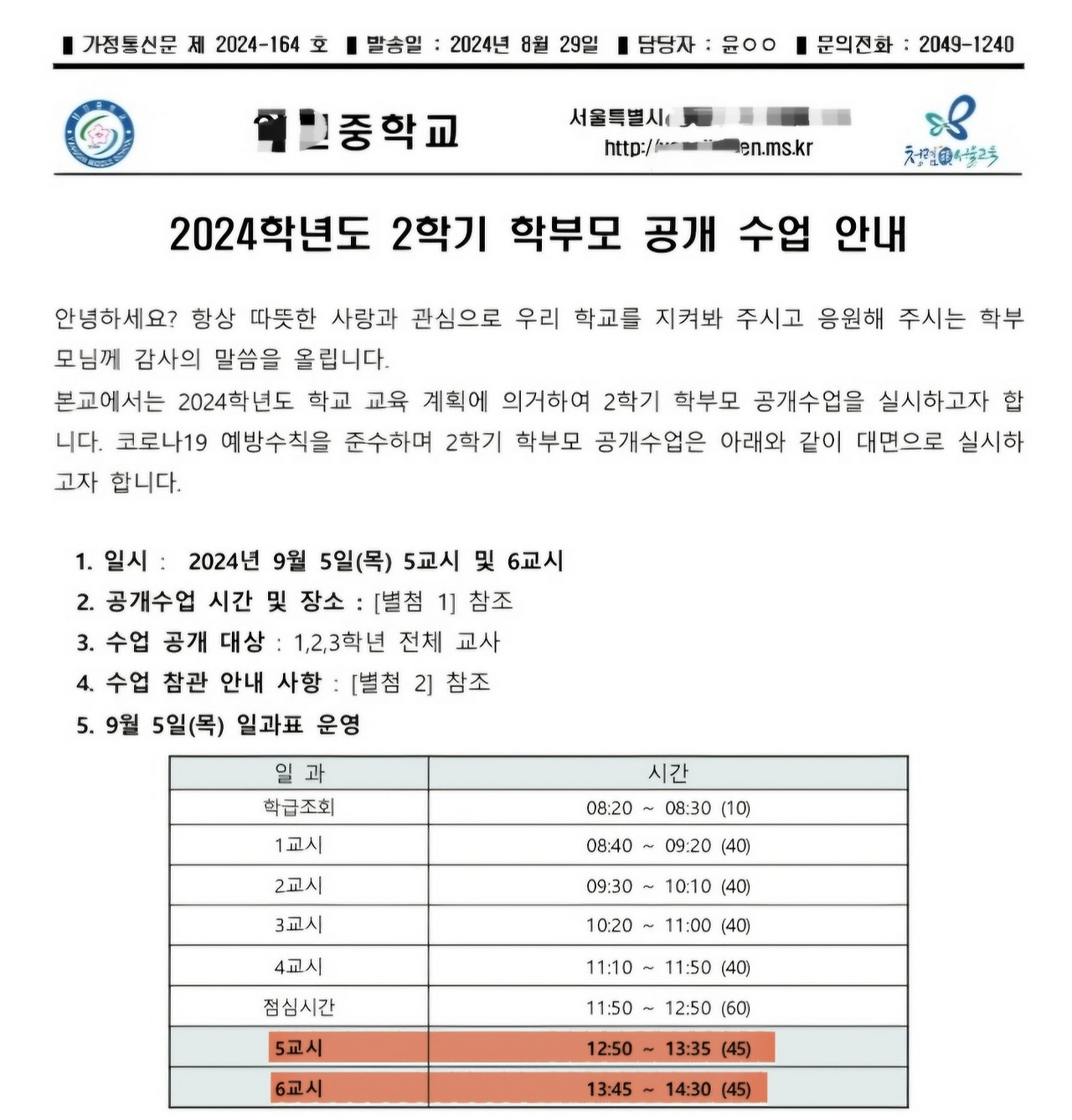 어제 저는 2학기 학부모 공개수업에 참여하러 학교에 다녀왔습니다. 1학기 때 총회와 함께 했는데 이번에도 하길래 이상하다 싶어서 한 번 찾아봤습니다. 의무적으로 학교에서는 학부모들에게 수업을 공개하게끔 방침이 정해져 있다는 사실을 알게 되었죠.