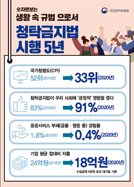 하지만 2015년 3월 26일부터 우리 모두가 알고 있는 청탁금지법(일명 김영란법)이 시행됨과 동시에 우리 사회는 정말 많이 깨끗해지고 청렴해졌습니다. 너무 강력한 처벌 규정이었기 때문이죠.