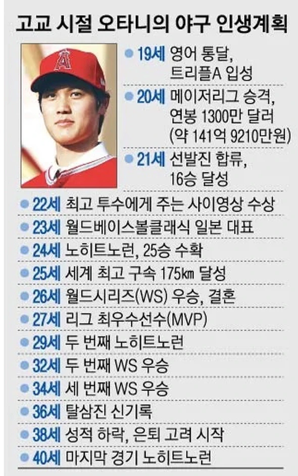 한 줄 요약 : 위대한 선수는 위대한 기록을 남긴다. 그래서 모두가 위대하다고 말한다. 오타니는 위대한 계획표 또한 남겼다.