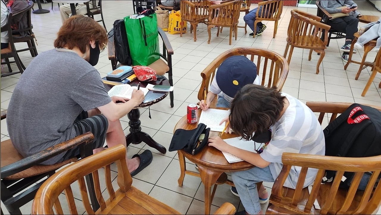 24년째 쓰고 있는 일기장은 필수죠. 어떻게 보면 노트북보다도 더 오래된 여행 친구이기도 합니다. 아이들도 일기장을 함께 챙겨가기에 우리 가족은 여행지에서도 함께 일기를 쓰는 나름 좋은 가풍이 생기기도 했죠. 예전에도 시간이 빠듯할 때는 공항에서 대기하는 시간에 사이좋게 자리 잡고 앉아 일기를 쓰기도 합니다.