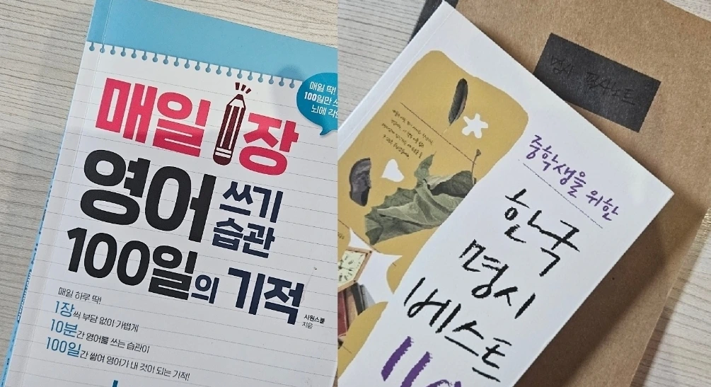그리고 시 필사는 마찬가지입니다 집에 좋은 모음집이 있어서 도전하게 되었습니다. 수능시험에서도 시가 무조건 나오니 이 부분도 도움이 될까 싶어서죠. 둘 다 제가 계속해 보고 도움이 된다 싶으면 아이들에게 권할 생각입니다. 그러니 중간에 흐름이 끊기는 일은 절대 용납할 수가 없죠.