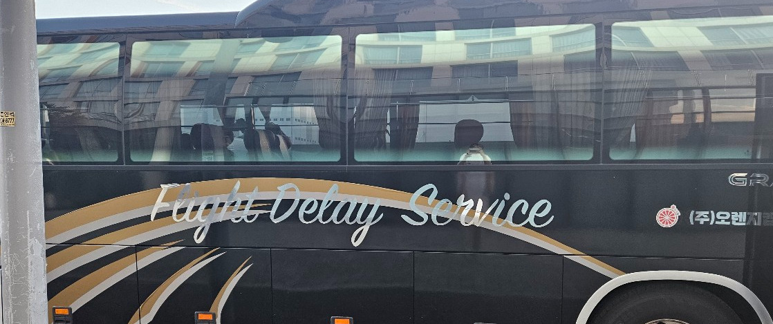 버스에는 Flight Delay Service라는 문구가 적혀있었죠. 이런 이름의 버스가 있다는 사실이 놀라웠습니다.