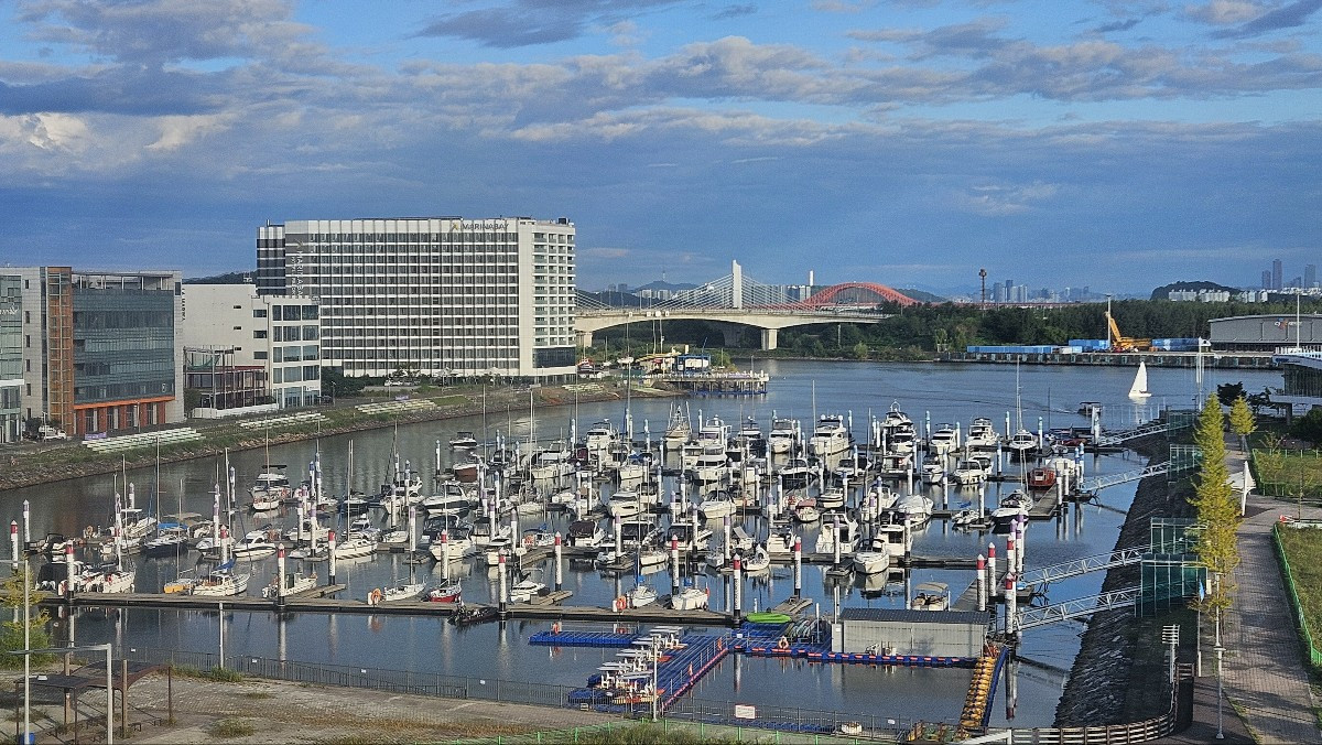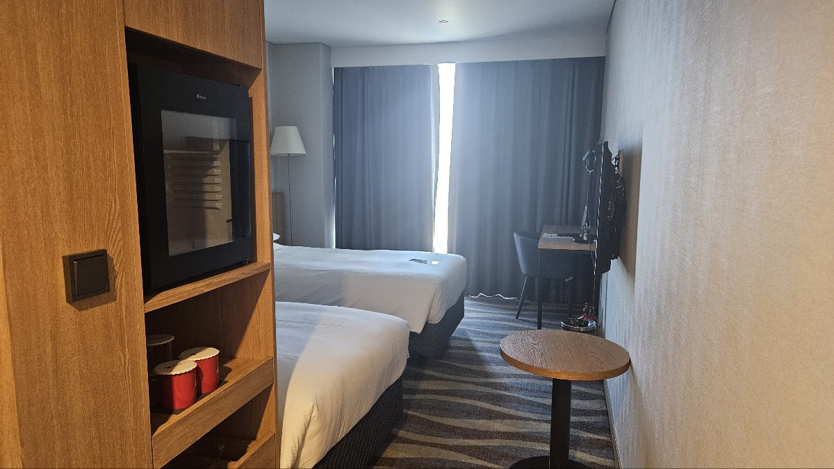 공항에서 출발해 김포에 있는 라마다 호텔에 도착했습니다. 2명 당 1개의 객실을 제공했는데 방이 넓지는 않았지만 잠시 있다가 가기에는 적절한 크기였죠. 전망도 제법 나쁘지는 않았습니다. 7층에서 바다가 내려다보이는 나름 오션뷰였으니까요.