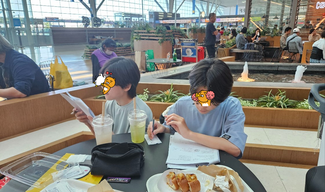 그러고 나서 저도 자리를 잡고 어제 올렸던 글을 쓰는 동안 아이들은 아이들대로 해야 할 일들을 합니다. 제법 분량이 많았던 수학 숙제가 있어서 챙겨 왔는데 이참에 한다고 말이죠.
