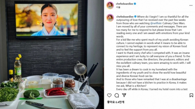 1. 자신의 주방과 도구로 연습을 하지 못해서 차별 논란이 있었던 에드워드 리는 한국에 있는 동안 호텔에서 따로 재료와 도구를 구비해서 요리 연습을 했다고 한다. 참고로 영어 번역은 생략.