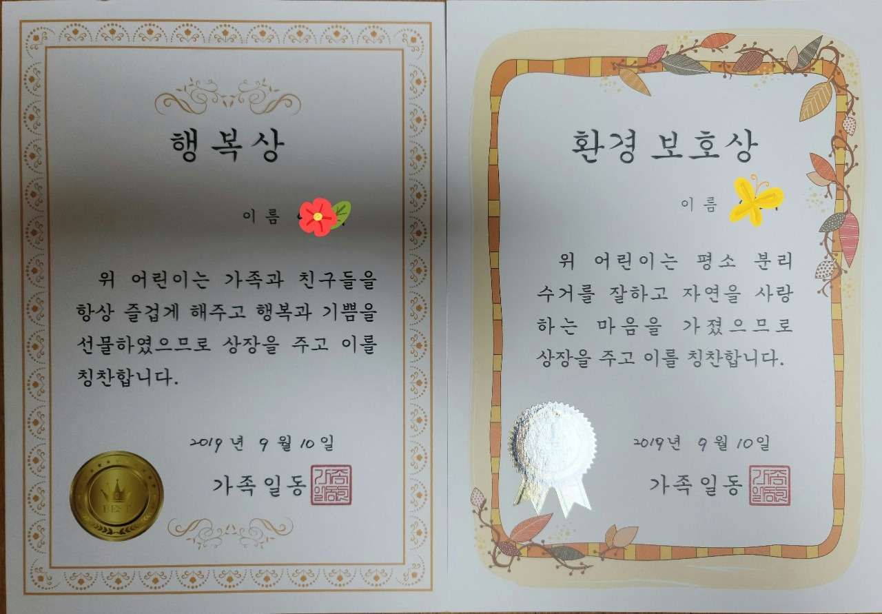 ◇ 칭찬을 종이로도 보여주세요(가족이 주는 상장)