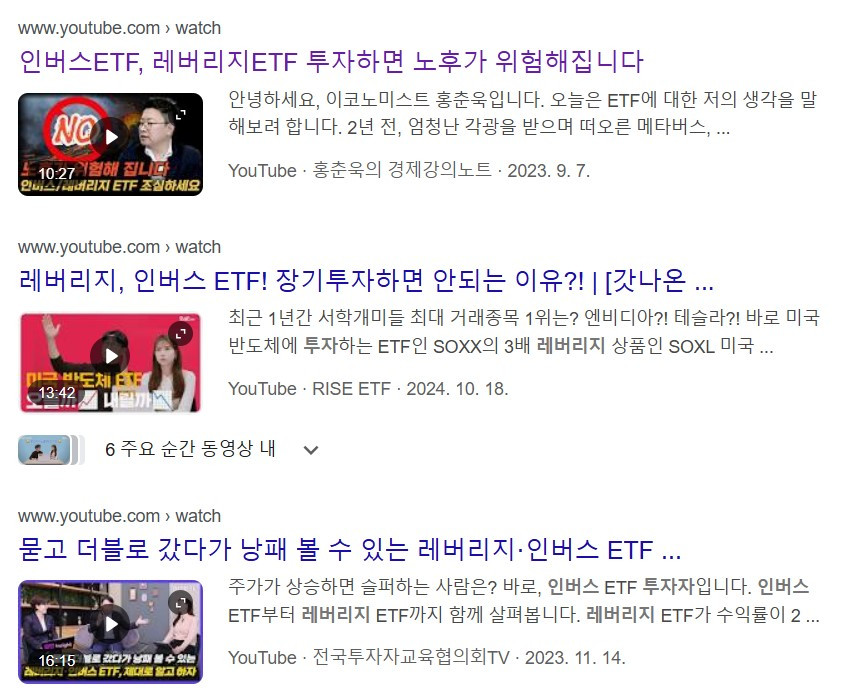 세 번째, 레버리지와 인버스 ETF는 운용 비용이 높아 장기 투자를 하면 예상보다 수익이 줄어듭니다.