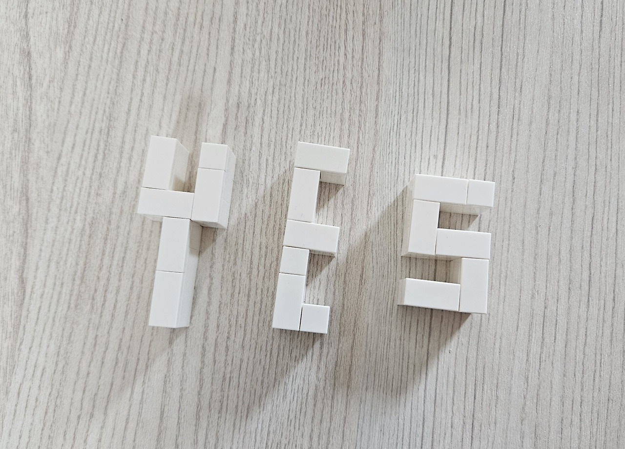 네 번째는 'AAA'입니다. F를 넣는 퍼즐과 비슷한데 대각선으로 되어있으니 잘 끼워지지 않아서 가장 오래 걸린 퍼즐이었습니다.