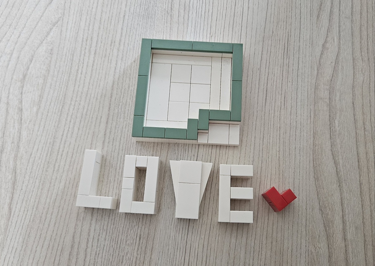 사랑을 가장 중요하게 생각하는 아들이라 그런지 하트 모양까지 꼼꼼하게 챙긴 점이 인상적입니다. 이 퍼즐도 생각보다 어렵습니다. V 모양 때문이었죠.