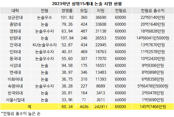 사실 이런 문제는 예견된 참사라고 해도 과언이 아닙니다. 연대 논술전형은 355명 모집에 17,759명이 지원해서 50 대 1의 경쟁률을 기록할 정도로 치열한 전쟁터였습니다. 특히 연세대는 ‘수능 최저 학력’ 기준이 없는 데다 학생부도 반영하지 않고 논술 성적만 100% 반영하는 방식이어서 지원자가 엄청나가 몰렸죠.