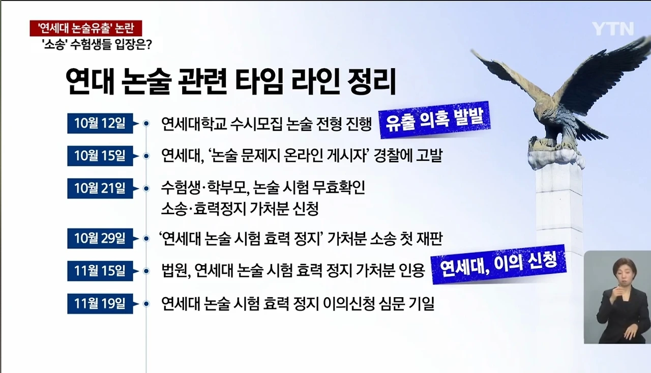그 이후에 수험생 18명이 “재시험이 필요하다”라며 연세대를 상대로 법원에 논술 시험 무효 소송을 냈는데 법원이 이를 인용하게 되었죠.