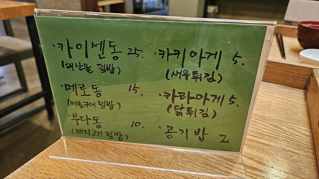 뭘 먹을지 고민을 하다가 카이센동을 시켰습니다. 값만큼의 맛이 있을지 걱정 반 기대 반입니다.