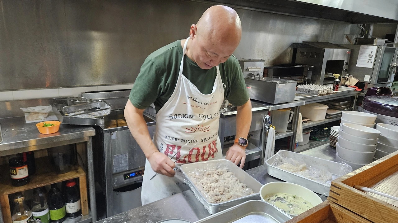 백수저인 김승민 셰프가 운영하시는 식당이었죠. 들어가는 길에 꽤 험하고 차 한 대가 겨우 지나갈 수 있을 정도로 좁습니다. 11시 반이 오픈인데 11시부터 도착해서 기다립니다. 그야말로 오픈런이죠. 줄을 서서 기다리는 일은 우리 나이에는 쉽지 않은 도전이니까요. 저희가 도착한 지 얼마 지나지 않아 사람들이 점점 늘어나기 시작합니다.