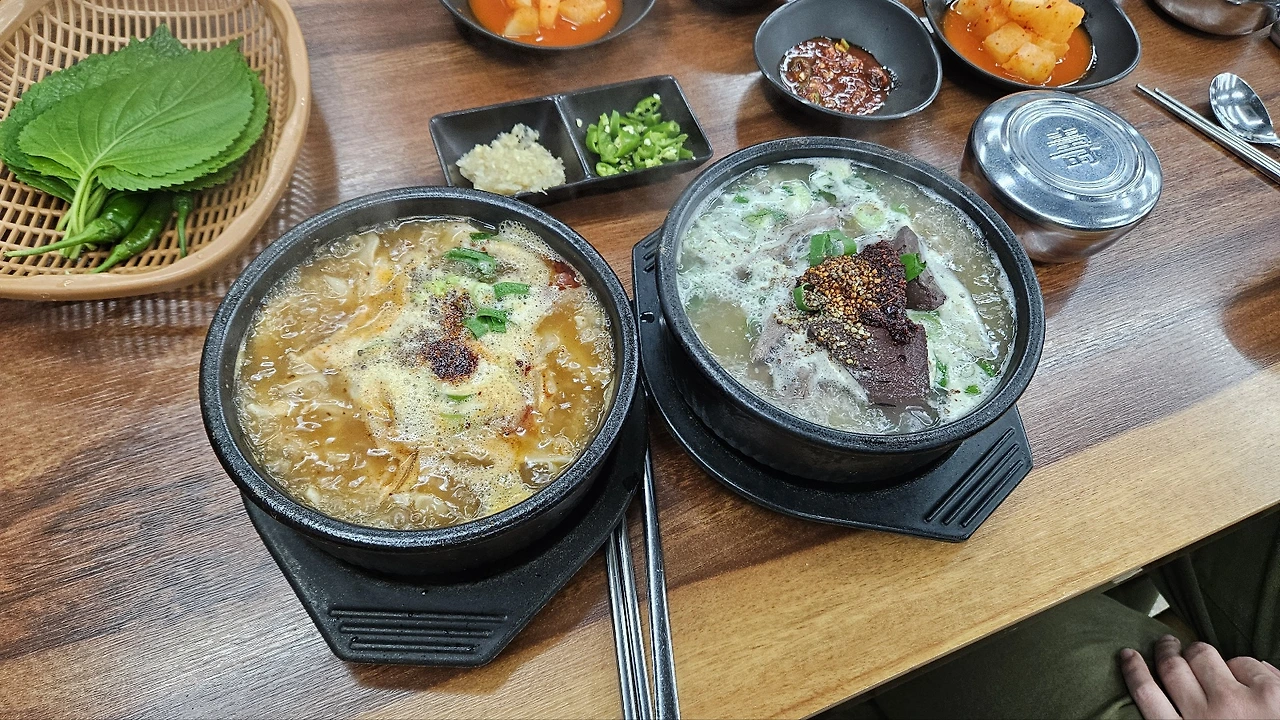 아침식사를 거하게 먹는 편은 아니라 처음에는 이 메뉴가 썩 내키지는 않았습니다. 선배의 강력한 추천이 있었기에 한번 믿어보기로 하고 찾아갑니다. 이른 아침 시간이었는데도 사람이 많아서 놀랐습니다. 해장국과 내장탕 두 메뉴뿐이고 반찬도 소탈한 편임에도 꽤 든든하게 잘 먹었습니다. 탕에 들어간 건더기 양이 많아서 밥은 남길 정도였죠.