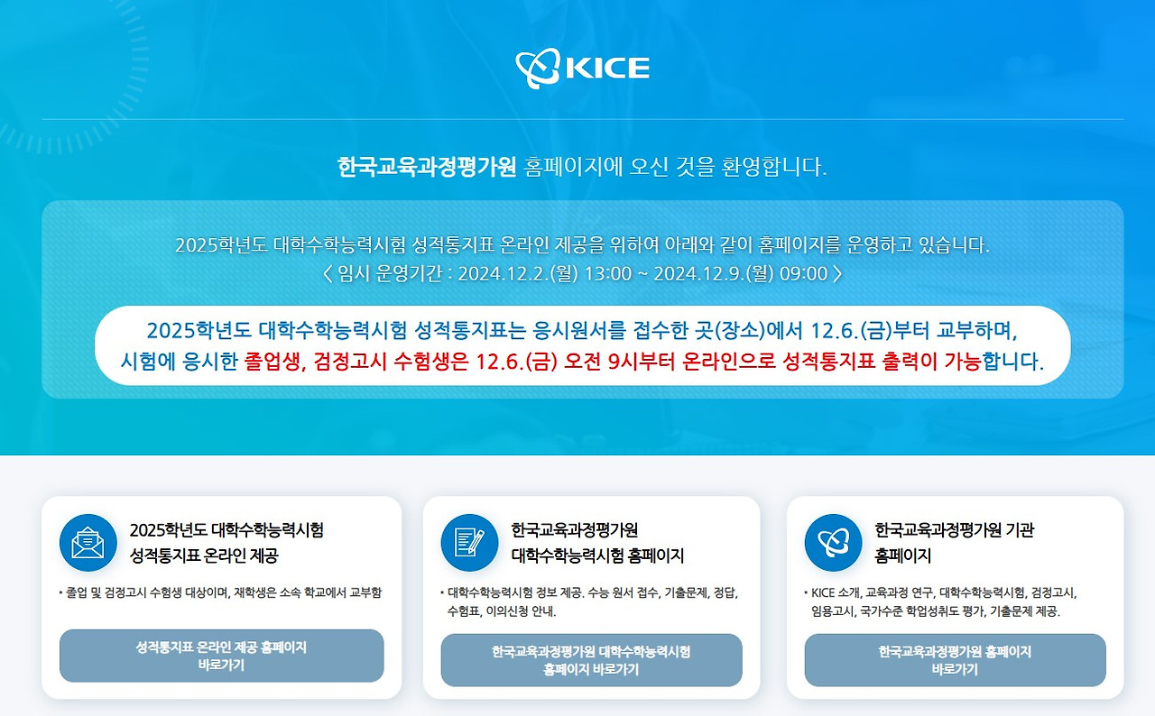 바로 2025학년도 수능시험 성적표가 발표되는 날이어서죠. 저 역시 2025학년도 수학능력시험을 8월에 접수하고 11월 13일에는 예비소집일에 다녀왔으며 11월 14일에는 수능까지 치른 한 사람의 수험생이기에 성적표가 공개되는 이날이 꽤 기다려졌습니다.