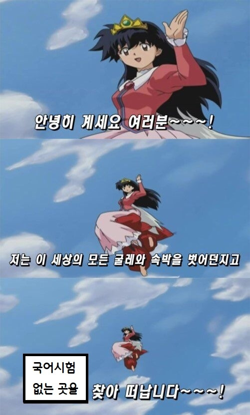 제가 하도 주위에 수능시험을 본다고 떠들어놔서인지 성적이 어떻게 나왔냐고 물어보는 분들이 제법 계셨습니다. 그냥 숨기려고 하다가 자폭하기로 합니다. 그리고 그 뒤에 이 짤과 함께 저는 조만간 국어 없는 곳으로 이민 가겠다는 실없는 농담도 던졌죠.