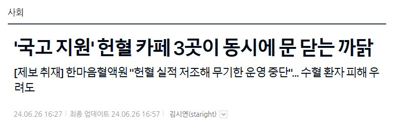 헌혈을 잘 마무리하고 나오면서 안타까운 소식도 있었다는 사실을 하나 확인합니다. 올여름에 헌혈의집이 세 곳이나 문을 닫게 되었다는 뉴스였는데요.