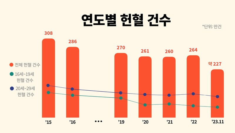 아이러니한 사실은 참여자가 점점 줄어서 혈액수급은 쉽지 않은 상황이고 센터까지 문을 닫고 있지만 의료대란으로 인해 수술이 줄어들어 수급에는 숨통이 좀 틔여있다는 소식이었죠. 나비효과라는 말이 새삼 실감 나는 이야기입니다.