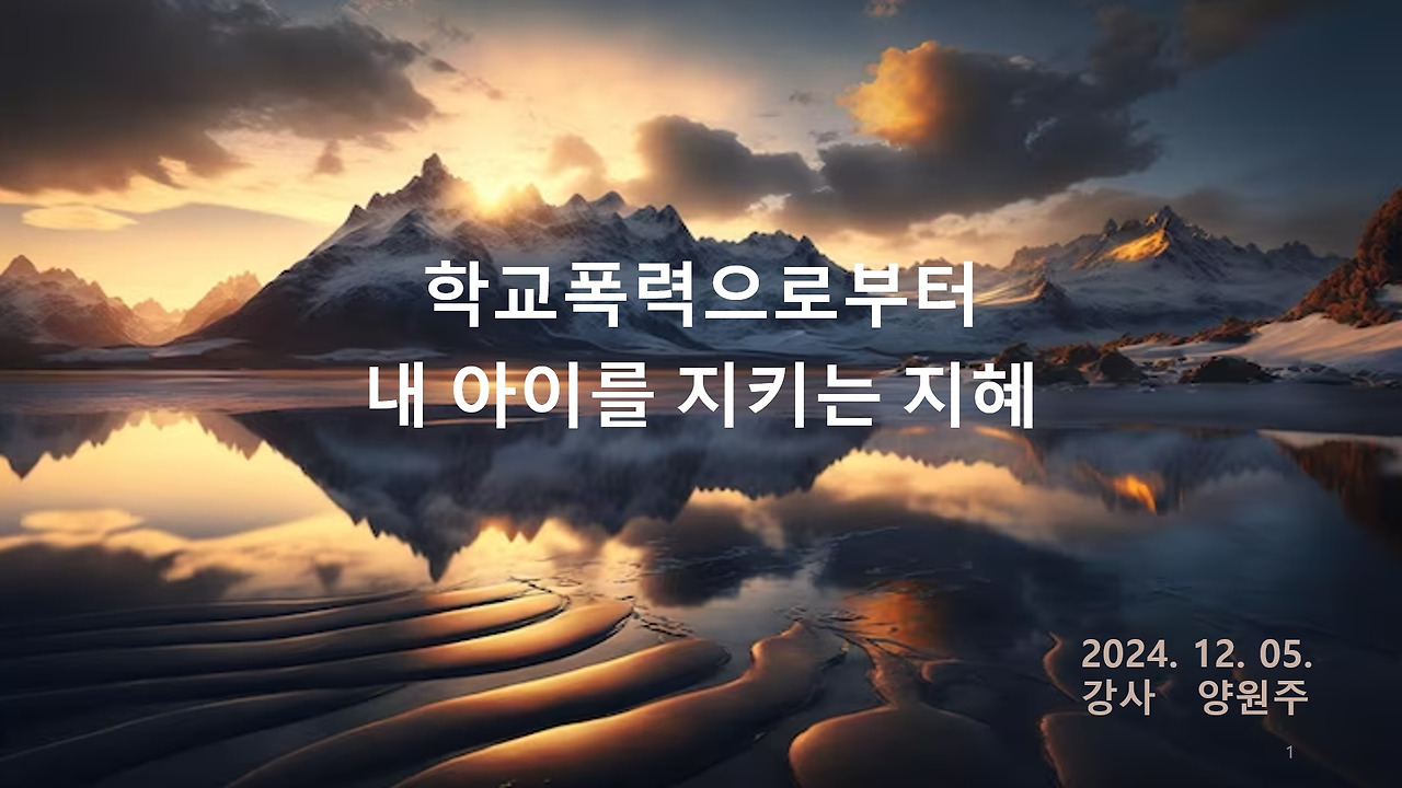 제가 준비했던 강연 제목은 <학교폭력으로부터 내 아이를 지키는 지혜>입니다.