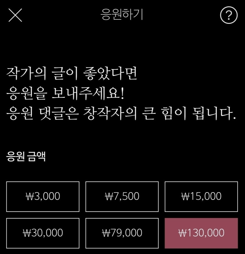 좀 치졸한 생각이었죠. 응원하기 처음 만들어졌을 때 수수료가 얼마인지에 대해서 알려진 뒤 말들이 많았습니다. 크리에이터와 함께 도입된 이 시스템을 보며 초반에는 반감을 많이 가졌었습니다. 하지만 광고도 하지 않는 글쓰기 플랫폼에서 제가 너무 많은 걸 바라고 있다는 사실을 알게 되었죠. 그러고 나서부터는 이 정도는 그러려니 생각하기로 했습니다.