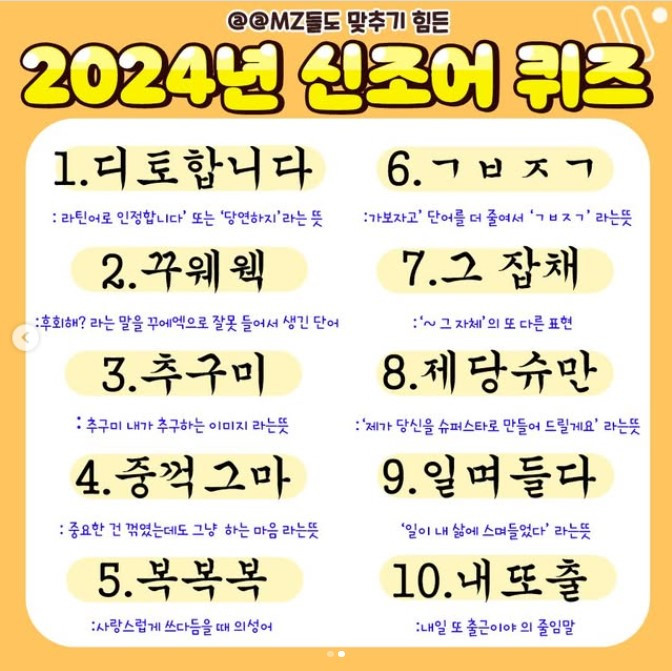 요즘따라 새로운 말들이 너무 많이 생겨나서 따라가기 벅차시지는 않은가요? 사실 저도 그렇습니다. 처음 접하는 신조어나 줄임말 때문에 제가 바보가 된 듯한 느낌마저 들 때도 있죠.