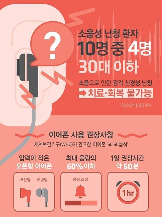 일단 신체에 다양한 부작용이 나타납니다. 대표적인 문제가 바로 청력 손상입니다. 이어폰은 귀에 밀착된 상태로 소리를 전달하기 때문에 볼륨을 높게 설정할 경우 고막에 직접적으로 충격을 줄 수 있습니다. 이로 인해 일시적인 청력 손실은 물론 심각한 경우 난청으로까지 이어지기도 합니다.