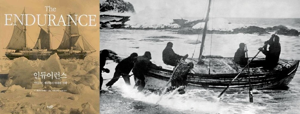 섀클턴 경은 탐험전 항해에 참여할 선원을 뽑는 면접에서 뛰어난 항해 능력보다는 긍정적인 성격을 가진 사람을 위주로 뽑았습니다. 극한의 상황에서도 좌절하지 않고 이겨낼 수 있는 능력을 최우선으로 여겼다는 의미입니다. 책 속에는 10명도 채 타기 힘든 구조용 보트를 타고 노를 젓고 바닥을 채우고 있는 물도 퍼내며 파도와 거대한 얼음 조각들을 헤쳐나가는 대목에서 황당하기 짝이 없는 내용이 나옵니다.