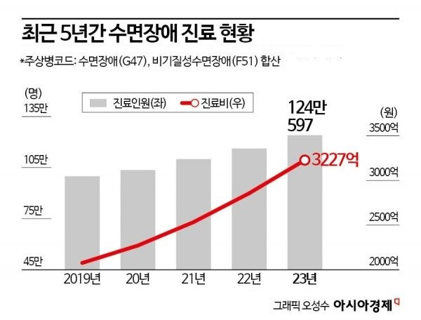 사실 국민건강보험공단 자료에 따르면 우리나라의 수면장애를 겪는 사람은 2018년(85만 5025명)과 비교했을 때 2022년(109만 8819명)에 24만 3794명이나 늘었다고 합니다. 4년 만에 28.5%나 증가했죠. 2022년 기준으로 잠을 제대로 못 자는 사람들 중에서 여성(62.3만 명)이 남성(47.5만 명) 보다 훨씬 많다는 점도 특징입니다.