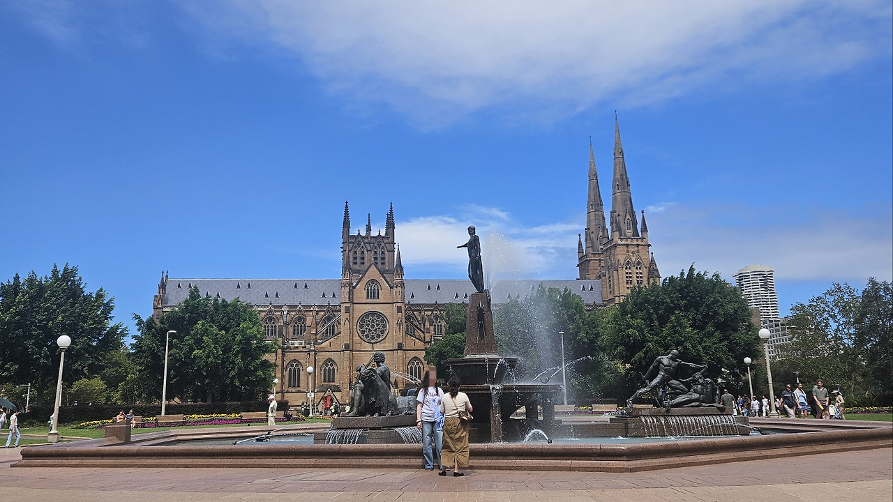 그다음에 방문한 곳은 하이드파크입니다. 런던의 하이드파크에서 유래되었다고 하는 곳인데요. 시드니의 대표적인 공원이라 할 수 있습니다. 공원 중앙의 분수도 인상적이지만 저 멀리 보이는 세인트 메리 성당과의 조화가 참 멋져 보입니다.
