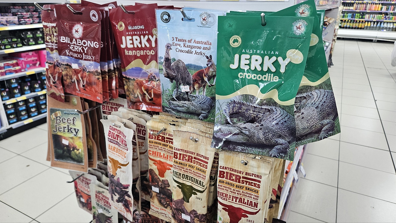 마트 구경도 해보는데 전반적으로 물가는 비싼 편입니다. 그런데 정말 눈에 띄는 먹거리가 있더군요. 바로 악어육포였습니다. 저는 잘못 본 줄 알고 눈을 동그랗게 다시 떴지만 뒤에 붙어있는 성분표를 보니 악어고기가 맞더군요. 세상은 넓고 음식문화는 다양하다는 사실을 새삼 느낍니다.