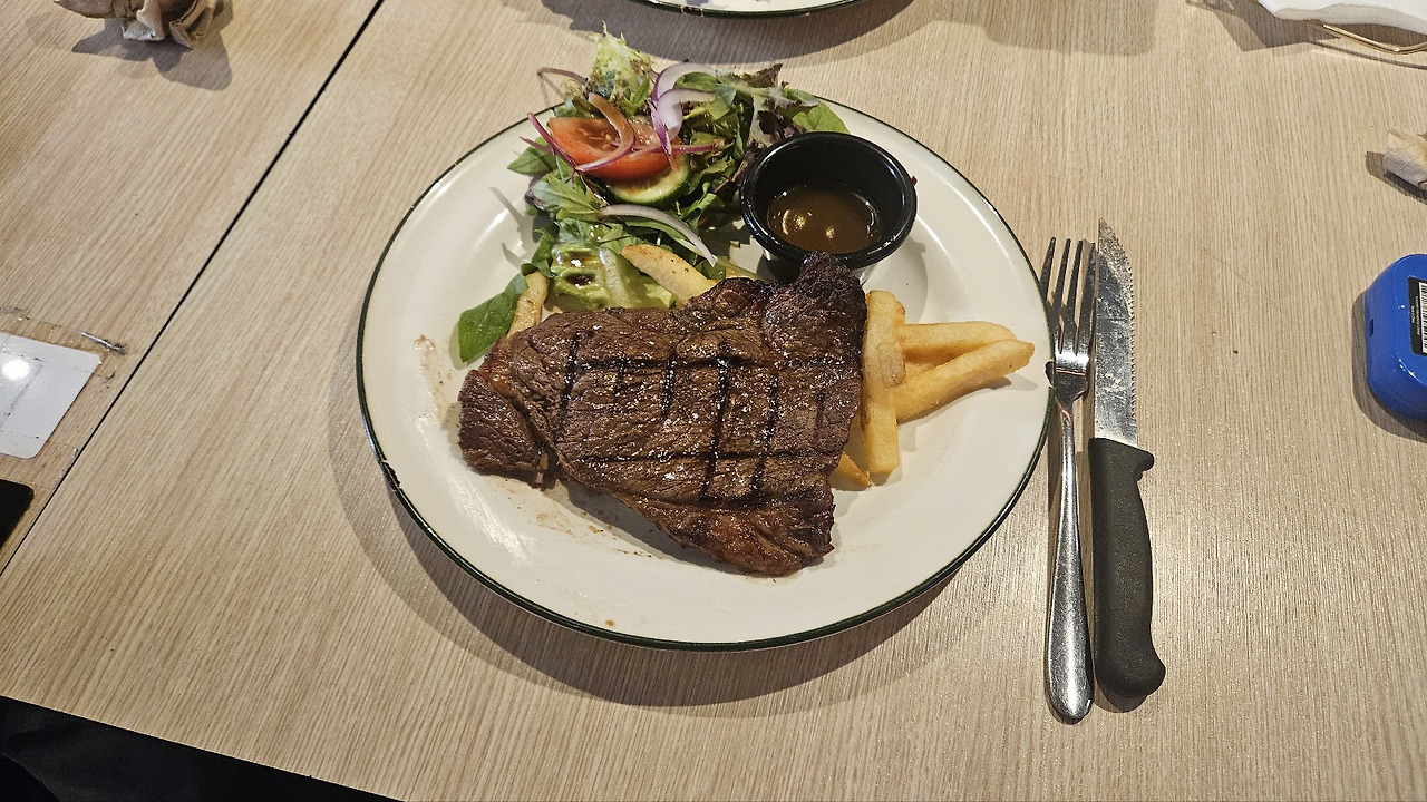 시드니 땅에 내리자마자 빡빡한 일정을 소화해야 하는 상황이 적응되지는 않지만 일단 밥부터 먹으러 간다고 하니 다행입니다. 도심지 어딘가에 내려서 식당으로 함께 이동합니다. 점심 메뉴는 감사하게도 스테이크라서 기분이 금세 좋아집니다.