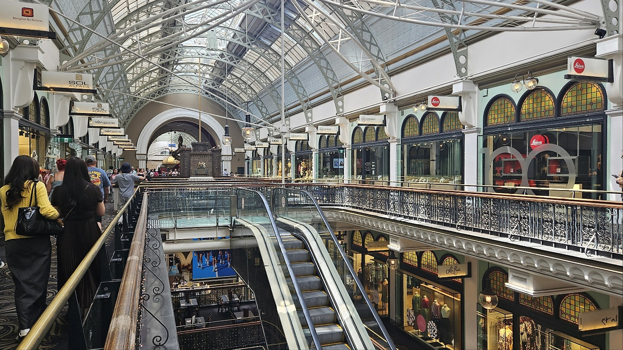먼저 QVB(Queens Victoria Building)라는 곳으로 갑니다. 꽤 커 보였는데 길이가 190미터, 폭은 30미터로 로마네스크 양식과 비잔틴 양식을 혼합해 설계된 건물이라고 합니다. 여기서 구경을 좀 하고 나오기로 합니다.
