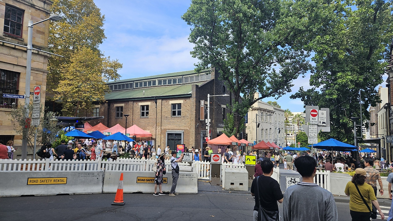다음으로 간 곳은 록스거리(Rock's street)입니다. 돌로 된 지역을 마을로 만들었다고 해서 록스거리라고 부르는 곳인데요. 1788년 1월 26일에 영국 제1함대 선원들과 영국계 이주민이 오스트레일리아에 최초로 정착한 지역이어서 더 유명한 곳입니다.