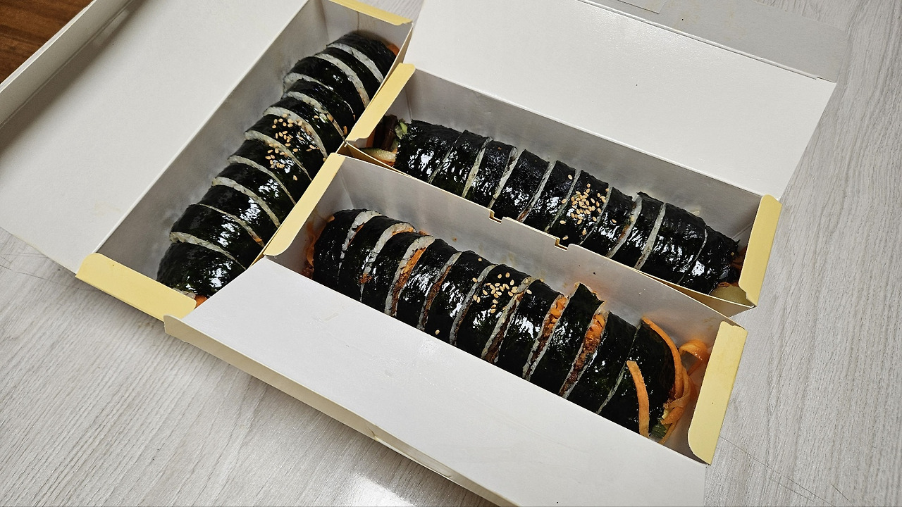 바야흐로 며칠 전 평일 오전에 외출을 했다가 돌아오는 길이었습니다. 점심을 뭘 해줄까 하다가 김밥을 사가기로 마음먹었습니다. 매일 밥상을 차려주기는 힘드니까요. 사람이 셋이었기에 세 줄만 사면 충분하겠다 싶었죠.