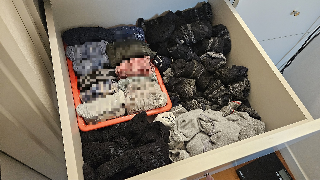 평소 저는 속옷과 양말을 마구잡이로 넣어두고 있었는데 정리가 되어있지 않아 어지러웠죠. 차마 프라이버시상 어질러진 사진은 올리지 않겠습니다.