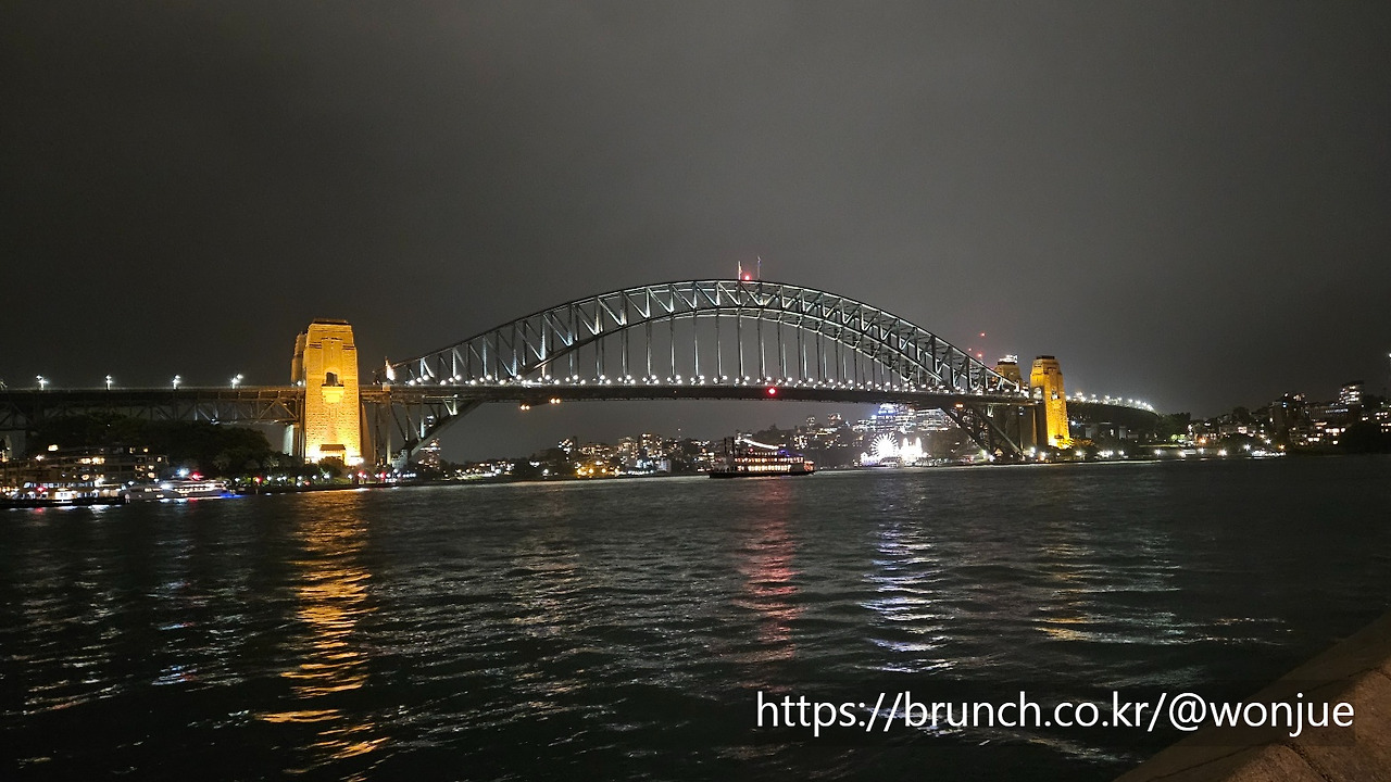 밤이지만 꽤 사람들이 많습니다. 근처에서 하버브리지를 바라보며 음료도 한 잔 마십니다. 낮 시간과는 달리 확실히 야경이 주는 매력이 있습니다. 운치가 있더라고요.