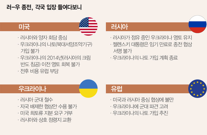 다만 우크라이나 입장에서는 받아들이기 힘든 상황들이 펼쳐지고 있어서 안타까움도 함께 느끼고 있죠. 일단 미국이 종전과 관련된 협상을 러시아와만 벌이려는 모습을 보이고 있어서입니다. 이 전쟁에서 큰 역할을 했던 유럽 여러 나라들은 물론 전쟁 당사국인 우크라이나마저 배제하려는 움직임은 큰 우려를 자아내고 있습니다.