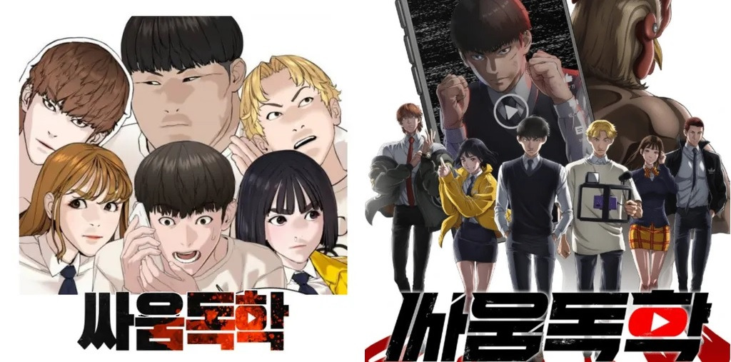 이렇게 요즘 학원물을 소재로 한 작품들이 큰 인기를 끌고 있습니다. '약한 영웅', '스터디클럽'은 이미 실사화가 진행되었고, '싸움독학'과 '외모지상주의'는 애니메이션으로 만들어졌습니다.