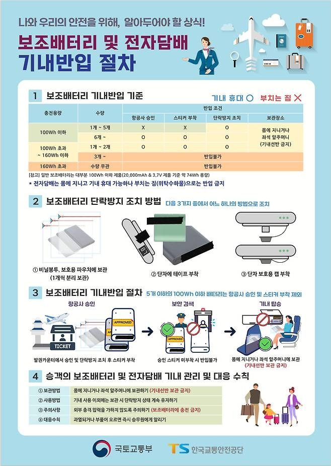 날씨가 좋아지면 여행을 위해 비행기를 타시는 일이 아무래도 많아지겠죠. 그런데 요즘 비행기를 탈 때 보조배터리와 관련된 정책이 많이 강화되어 찬찬히 정리해 봤습니다. 아무래도 에어부산 기내 화재로 인해 이런 제품들의 기내 반입이 강화될 수밖에 없는 상황이기는 하니까요.