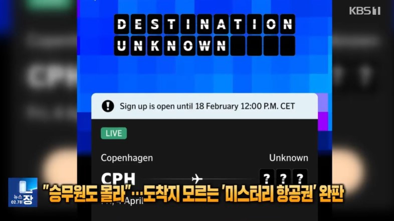 이 항공권을 사게 되면 출발지는 덴마크 코펜하겐이지만 도착지는 철저히 비밀이라고 합니다. 탑승객들은 어디로 향하는지도 모른 채 공항에 집결했는데 비행기에서 내리는 순간까지 도착지를 알 수 없었다고 합니다.